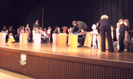 | Stora Barnen uppträder | Små barnen med föräldrar, uppträder |